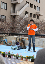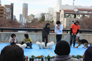 先日の目黒川クリーンアップに引き続き目黒区も協賛しているイベントで、これまたクリーンアップに引き続きペットフード会社の「マースジャパン」さんとのコラボ協賛での参加でした。準備段階では曇りの状態で肌寒かったのが、イベント開始時には見事に晴れて素敵なイベントとなりましたよ! 残念ながら桜はまだ三分咲きにもなってなかった?くらいですが、お花見している方も多くの、もちろん犬連れの方も多くの充実したイベントでしたね。